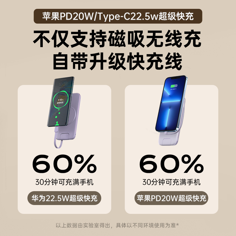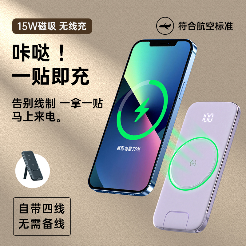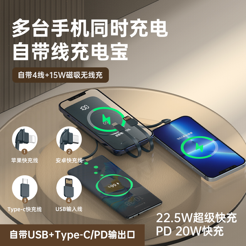 (US SUIDDY) Magnetic suction mobile charging with data line Three-in-one wireless fast charging 20000 mAh ultra-thin small portable suitable for Apple Xiaomi oversize action power supply