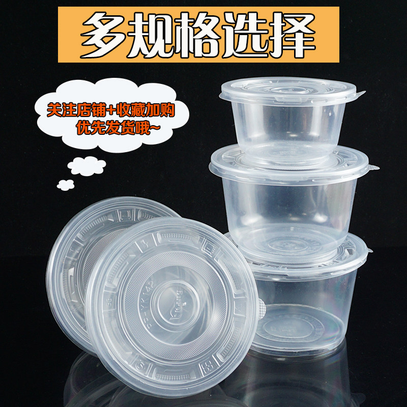 Disposable bowl round plastic bowl thickened with lid soup bowl delivery special packaging bowl transparent no lid round bowl whole box