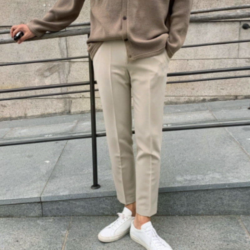 Special Spring and Autumn New Beige Pants Korean Trend Casual Trousers Straight Loose Simple Men's Cigarette Pants