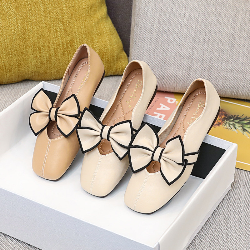 Gentle shoes fairy flat shoes women's 2022 new one pedal French square head bow retro Mary Jane shoes