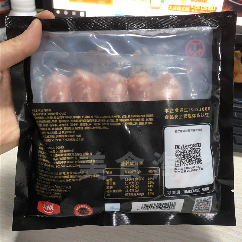 Large adult Taiwanese sausage 200g * 4 packs 20 Family clothes Desktop grilled sausage Fire leggings Volcanic Stone Original Taste Sausage