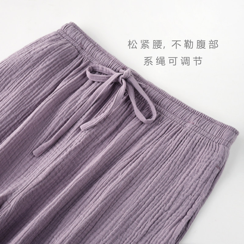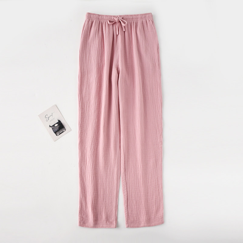 Japanese pajama pants men and women spring autumn summer cotton gauze double layer thin section loose washed cotton trousers couple home pants