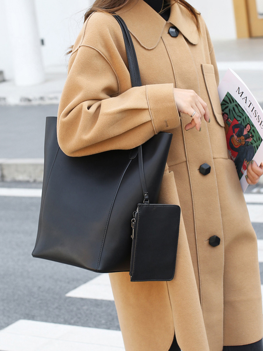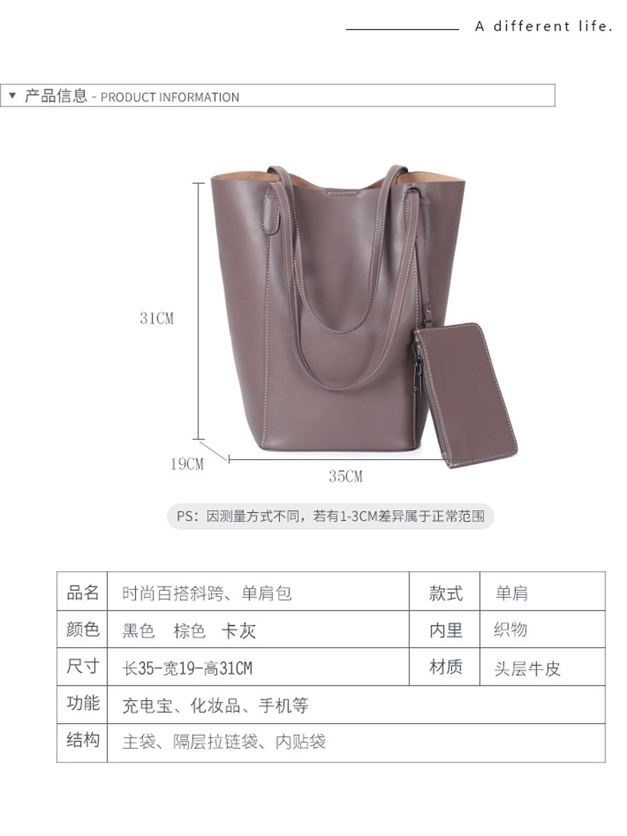 Lady Bonagrain leather single shoulder handbag Bucket Bag Large Capacity Splicing 100 Hitch Fashion Casual Minimalist bag