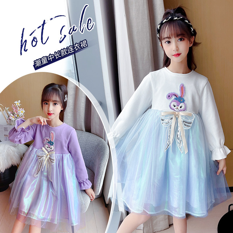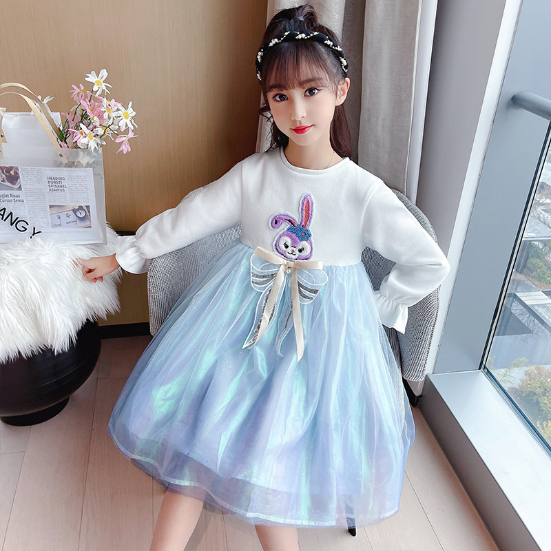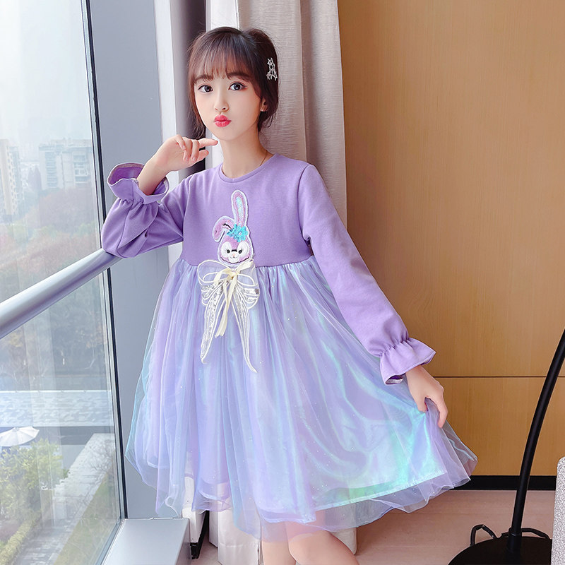 Big girl dress 2022 spring and autumn new style big girl mesh skirt children's fashion long-sleeved princess dress