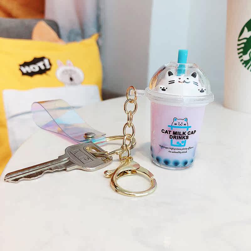 Car keychain can drift love quicksand cat milk tea cup schoolbag pendant si2354654_n creative girl network