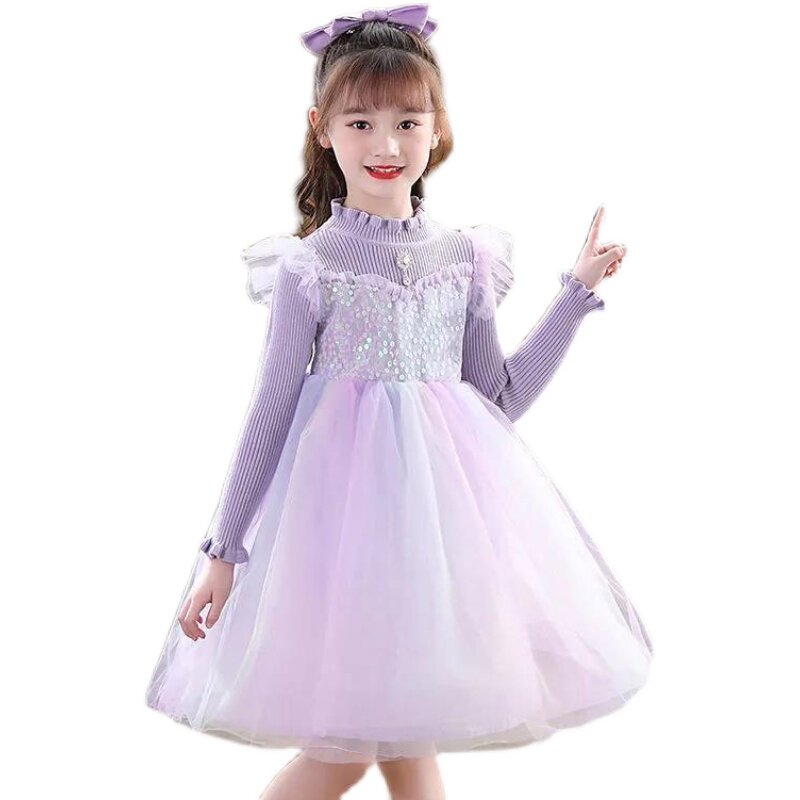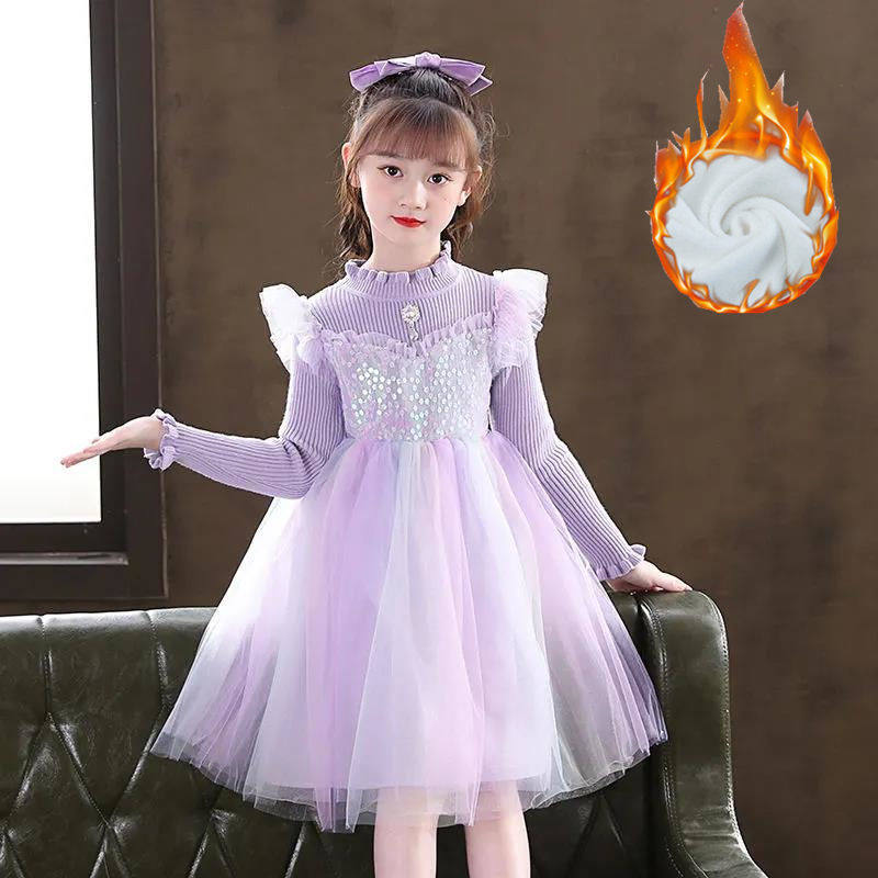 Girl Ocean Dress 2022 Springtime Spring Dress New Korean Version Children Girl Long Sleeve Princess Plus Suede Winter Dress Skirt Tide