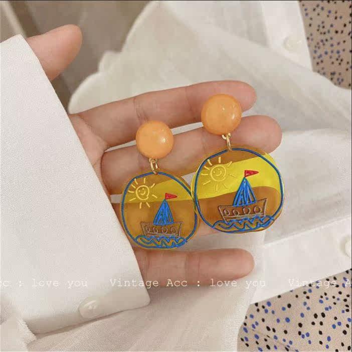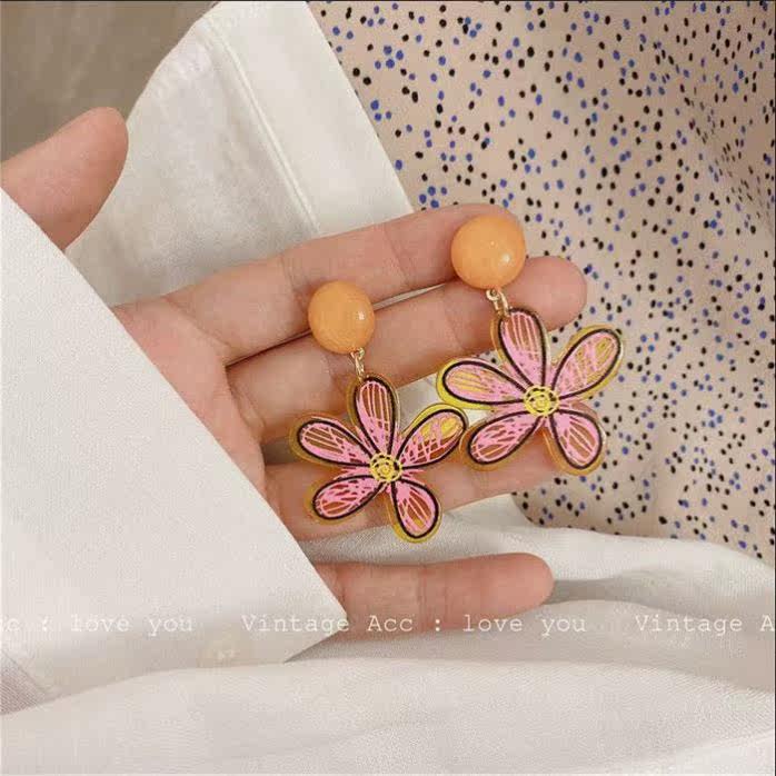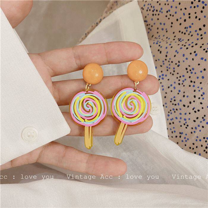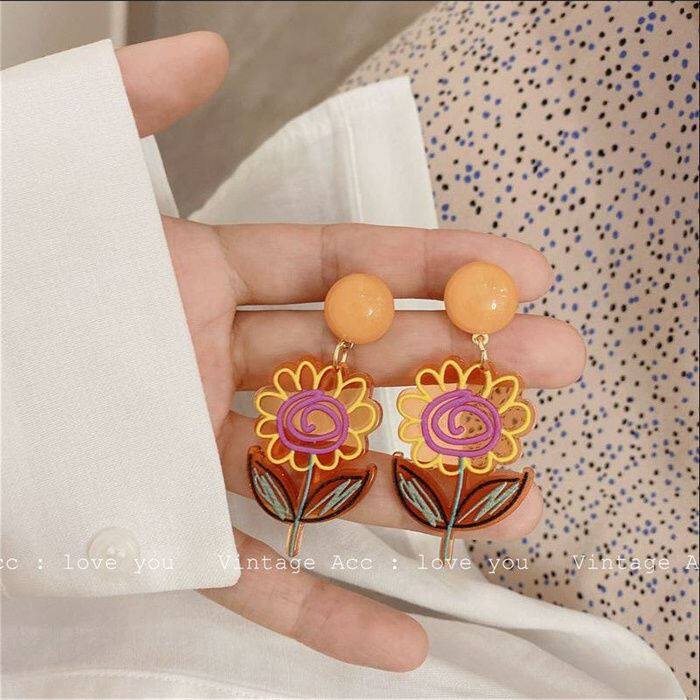 Korean ins temperament simple and versatile fun color hand-painted acrylic flower candy earrings earrings ear clip female
