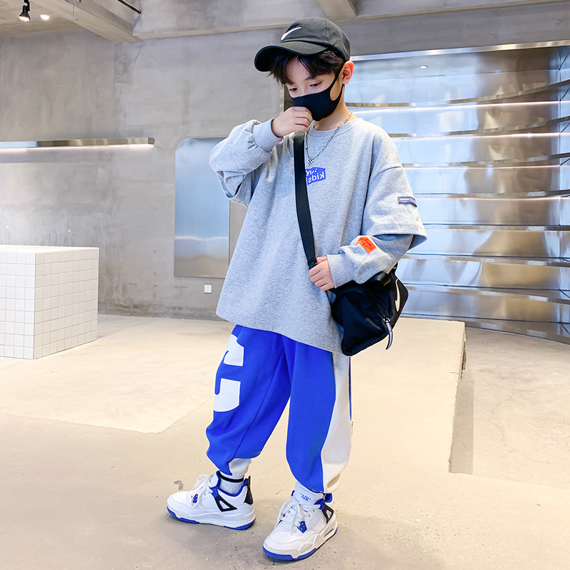 Children suit Spring-autumn-style net Red Fried Street Boy Trend Spring Dress Handsome and Fashionable Sportswear Suit big boy