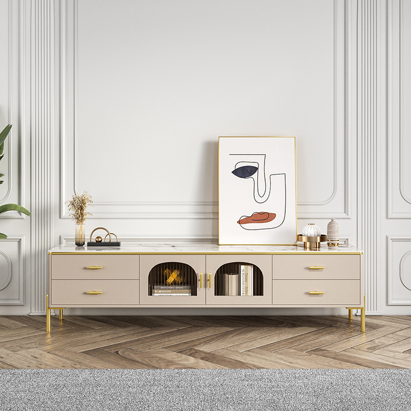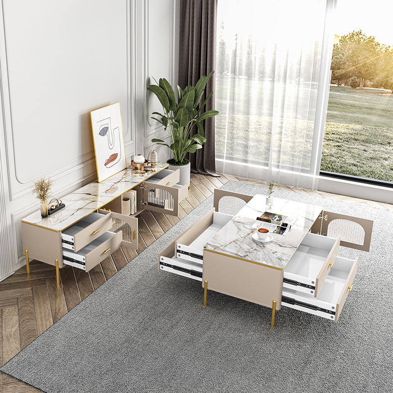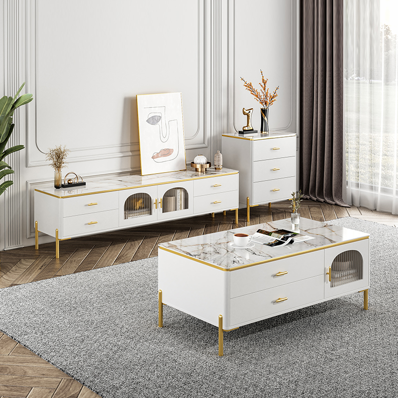 (Senior white) 1 6M TV cabinet tea table (thick solid rock plate long iridescent glass) (Note