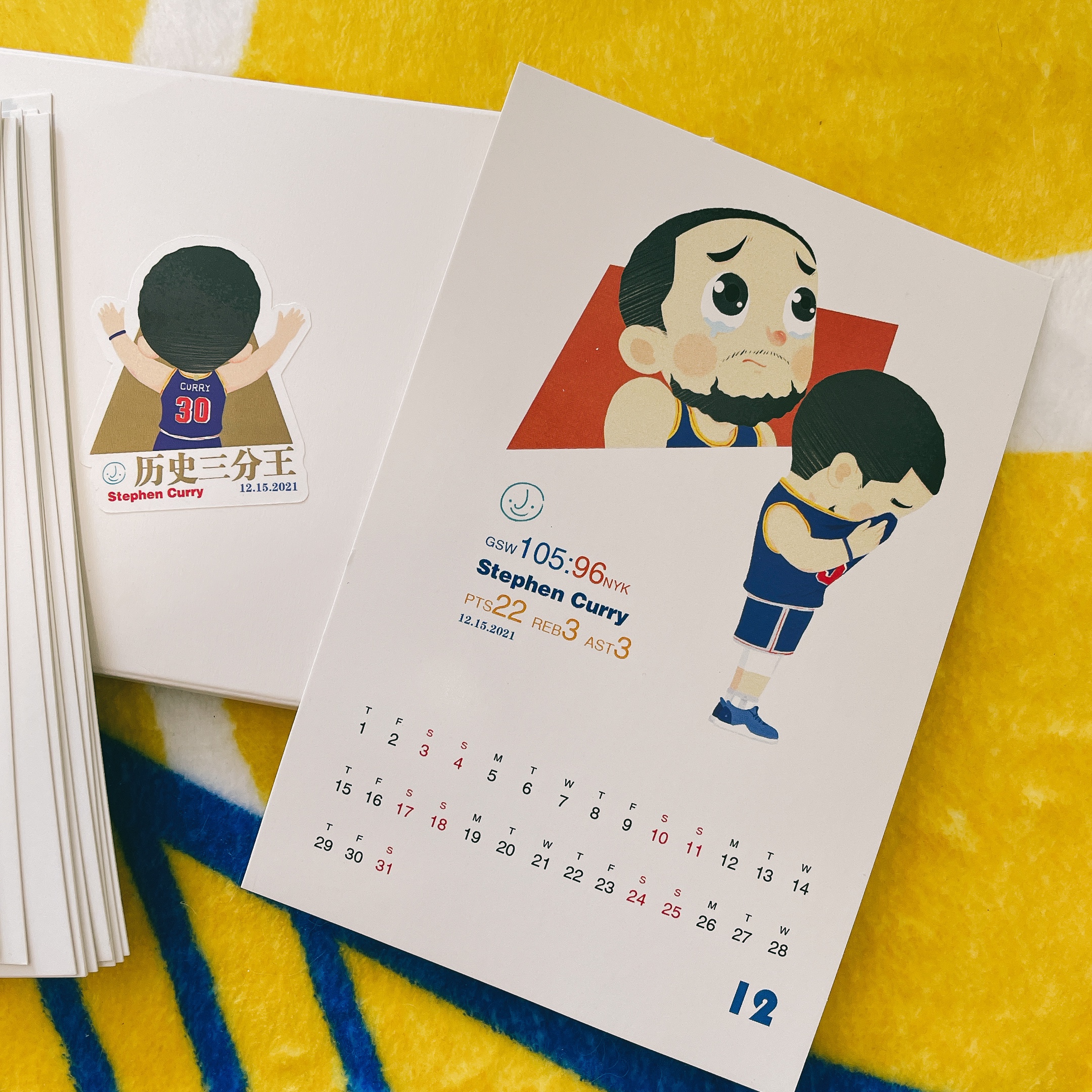 Xiaoyi original Curry three-point king 2022 calendar schedule cartoon basketball postcard Curry surrounding bookmarks