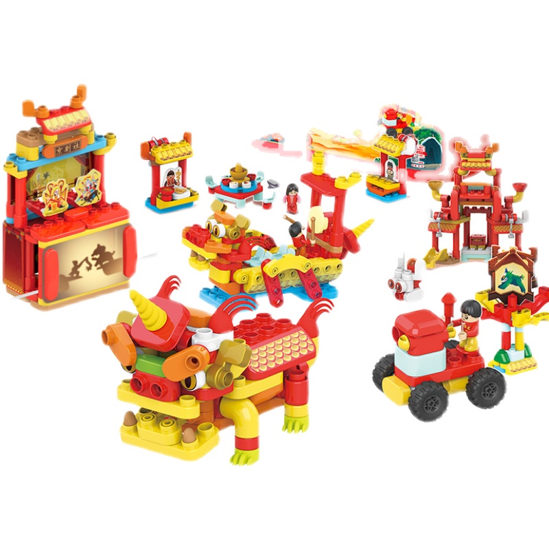 Brou building blocks Happy Chinese barrel 100 Changing Buru children Puzzle Assembling Toy Male Girl New Year Gift