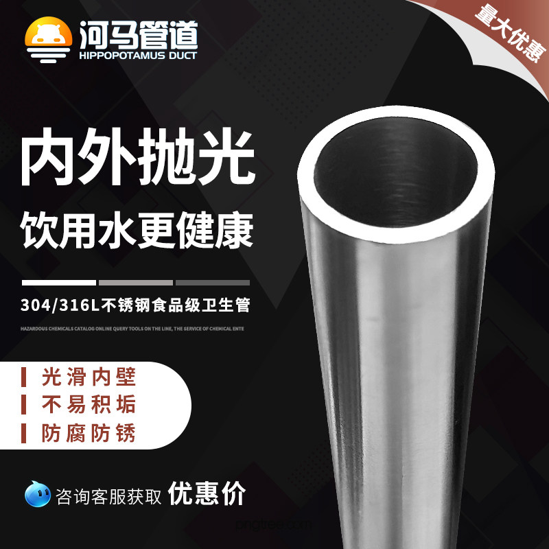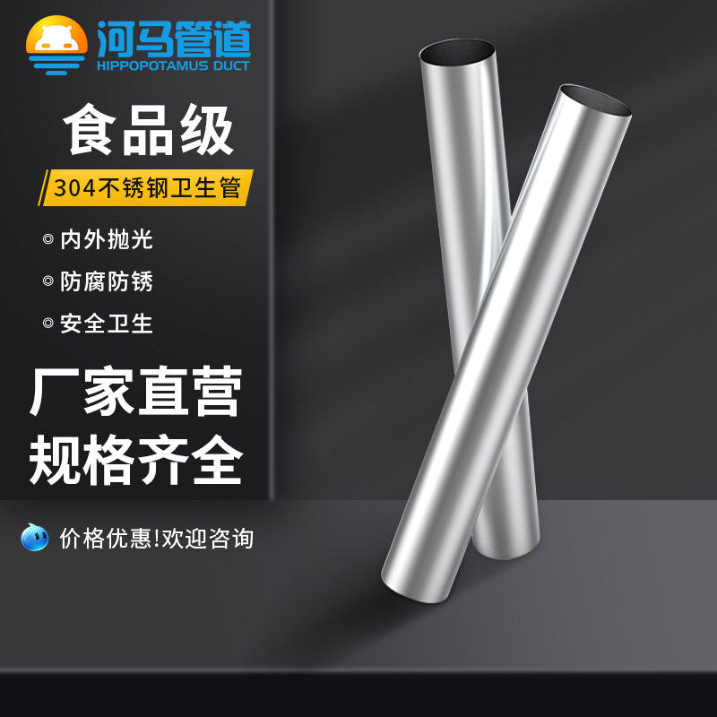 304 stainless steel food grade sanitary pipe inside and outside polished 316 to drain pipe hospital engineering custom manufacturer straight camp