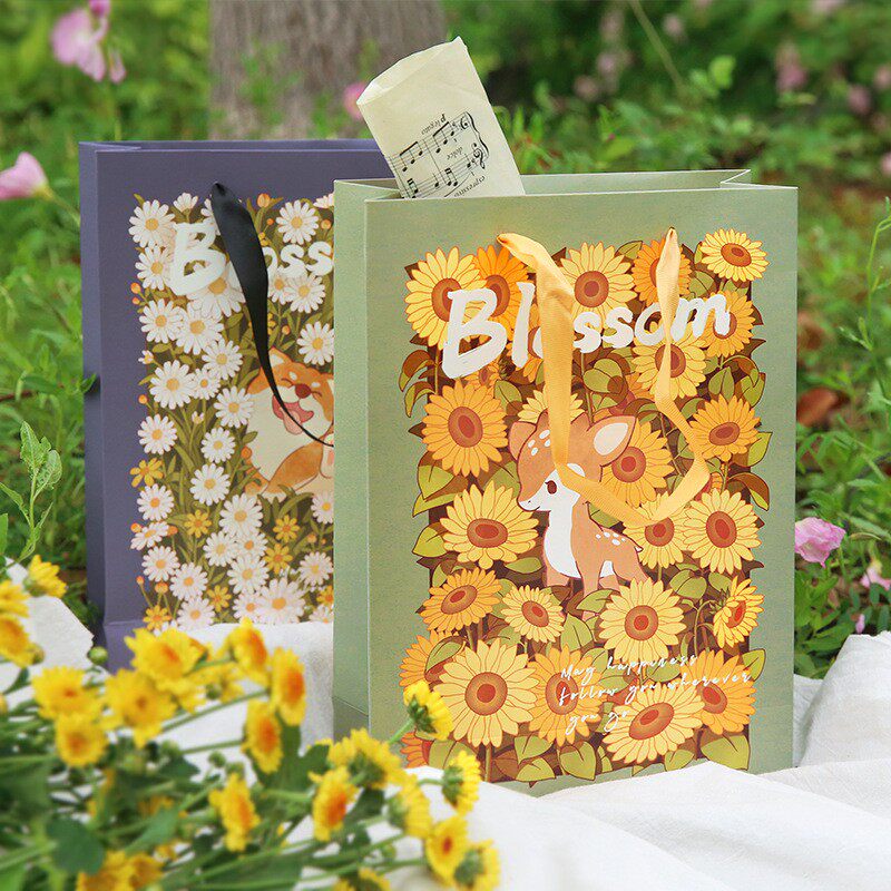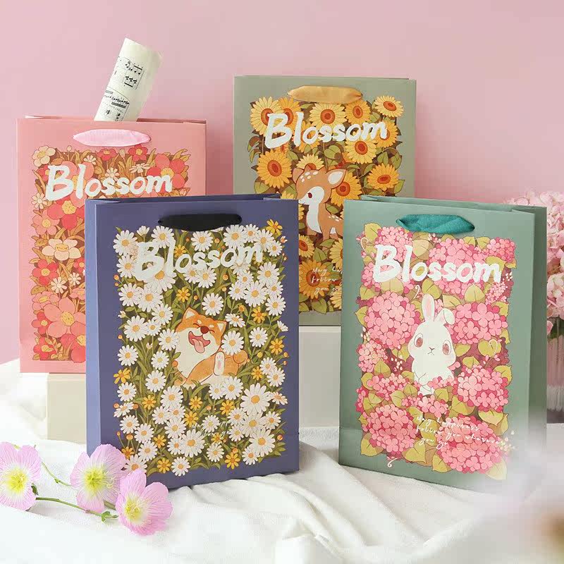 Small red flower and cat gift bag sunflower and deer gift bag embroidered ball and rabbit gift bag small daisy and dog gift bag Full store Multi-area full RMB18