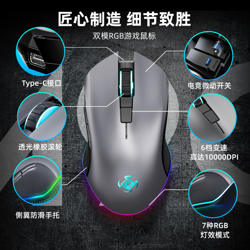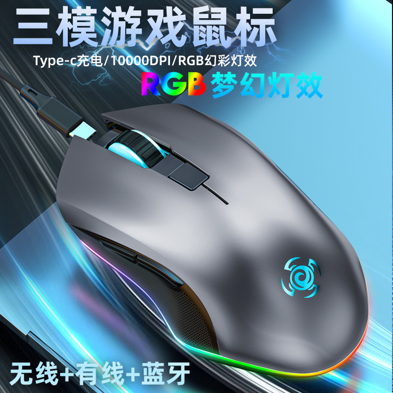 Bluetooth Wireless Wired Three-Mode Slip Rat RGB Macro Programming Design Electric Race Gaming Notebook Desktop MAC Can Charge Mute