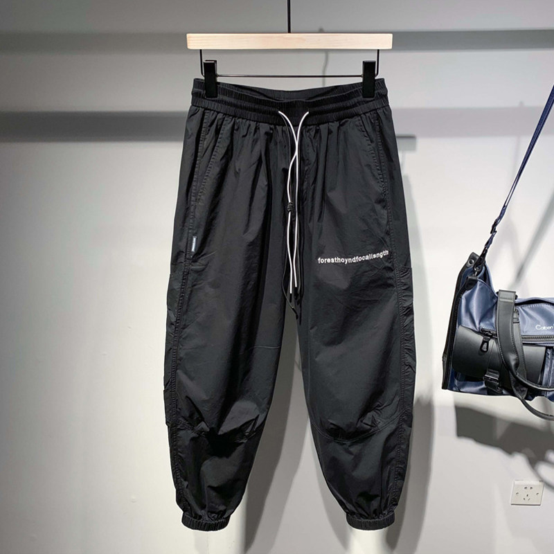 Trinlu Japanese sports fashion drawstring thin section beam dry casual pants men's autumn and summer small letters loose beam pants men