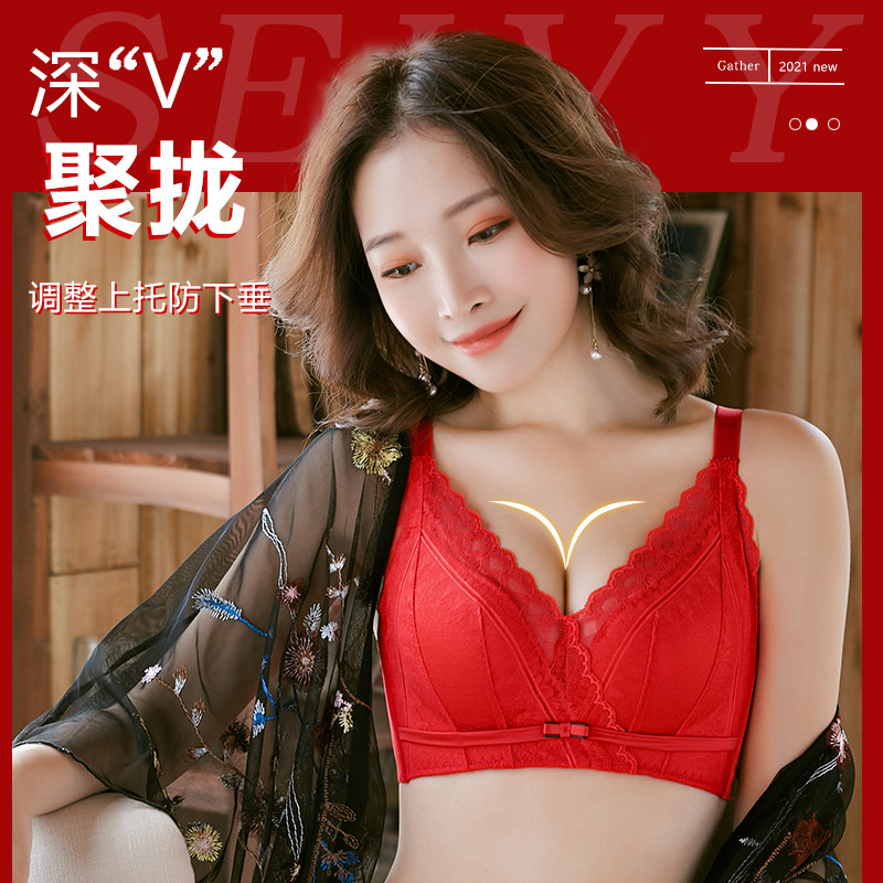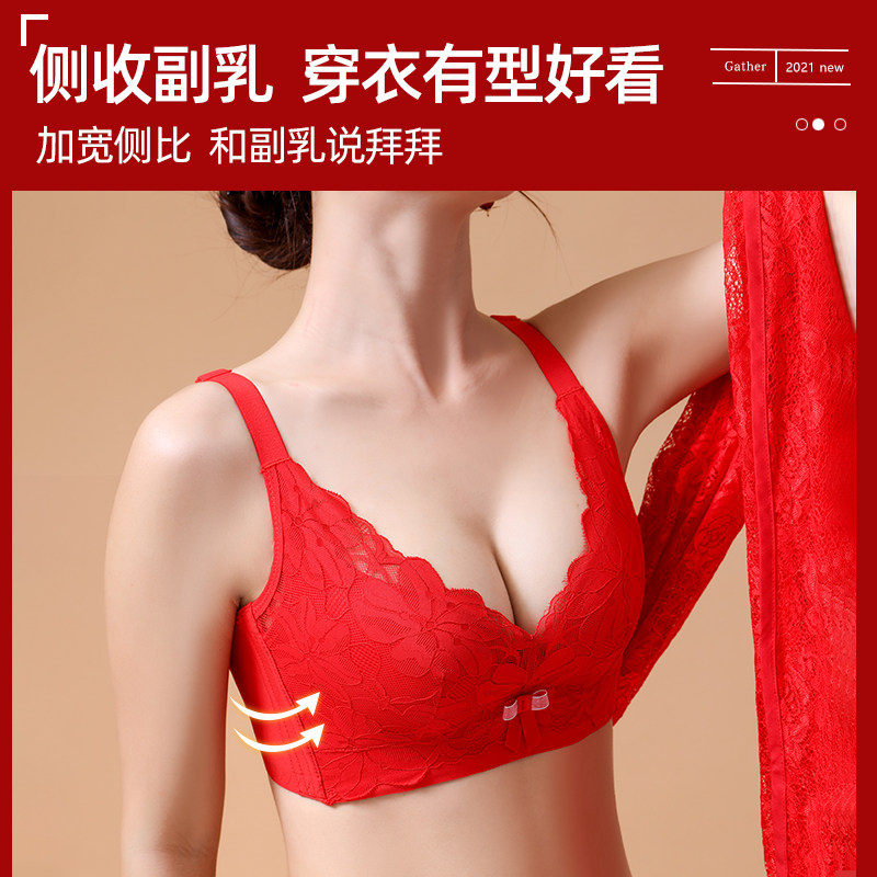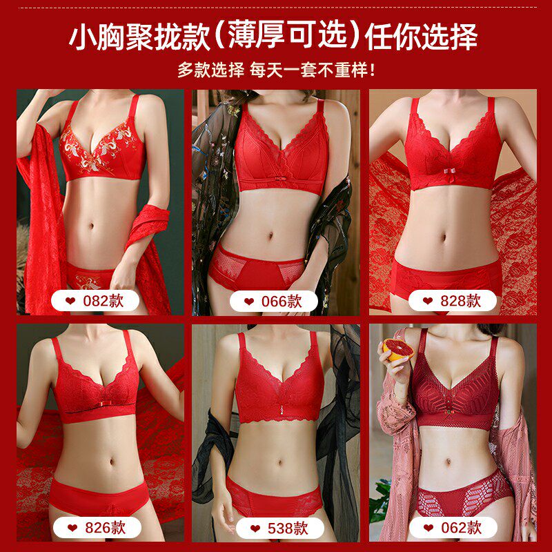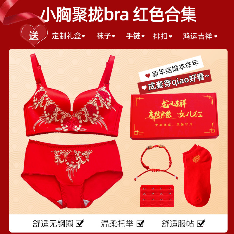 New Year's big red lingerie women's small breasts gather for this year Bride wedding No steel ring bra underpants gift box set