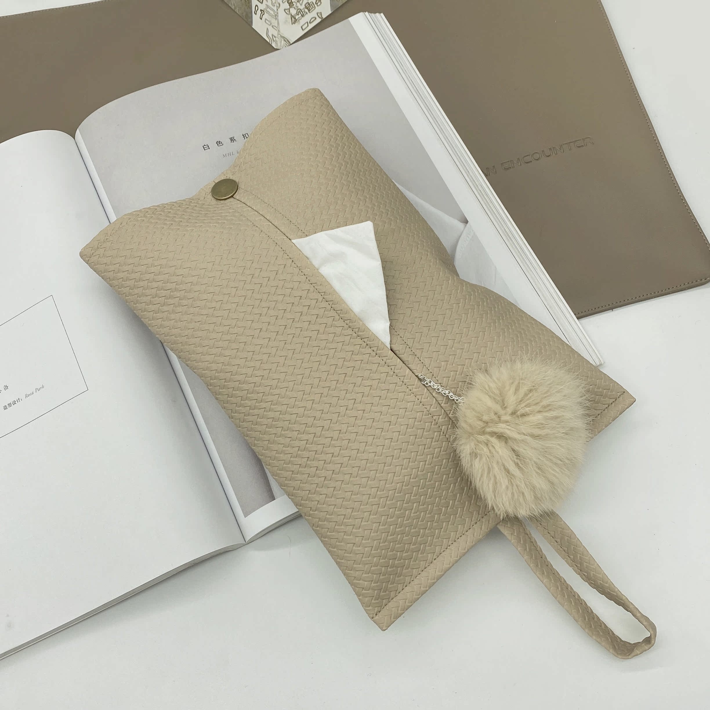 Original design Milk Oil Color Woven Pimi Apricot Leather Tissue Box