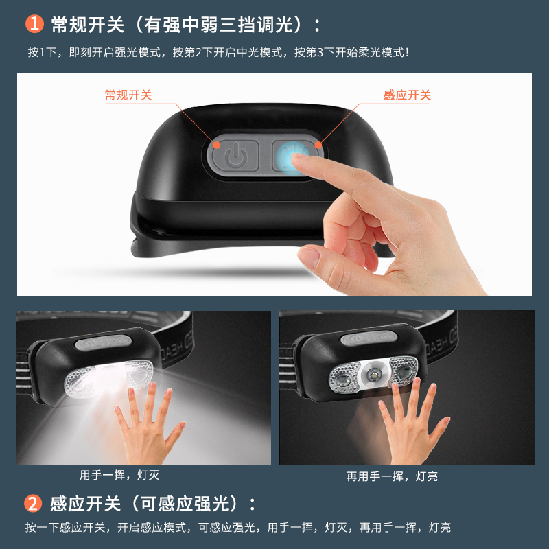 Outdoor Headlights Floodlight Charging Headwear Type Super Bright Hand Sensing Phishing Special Lithium Battery Small Horn Strong Renewal Waterproof
