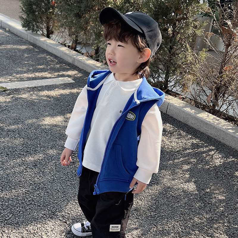 Boy with hat vest Spring and fall outside wearing foreign pie jacket jacket child male baby casual sleeveless blouses