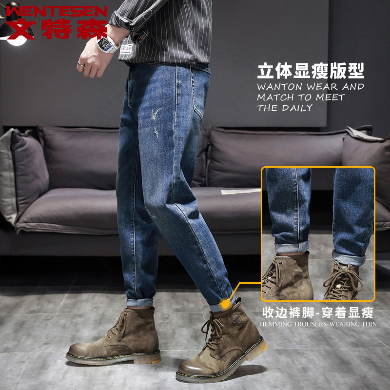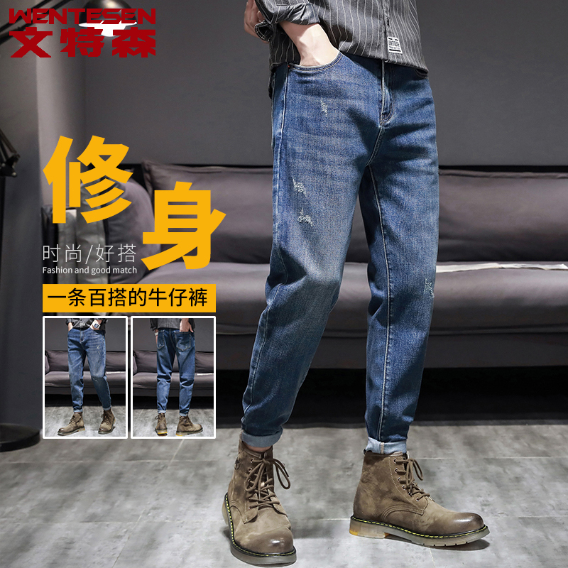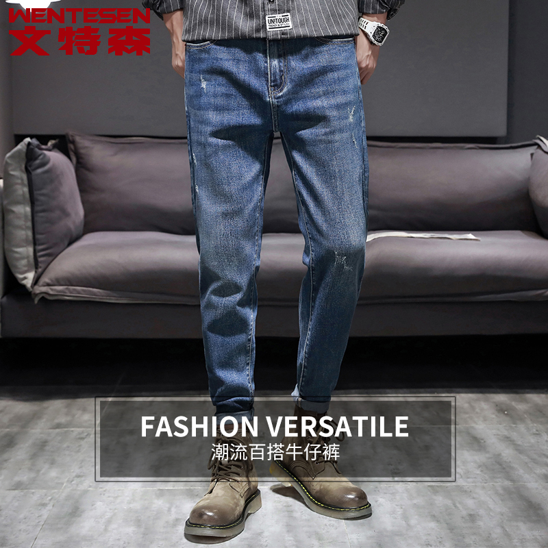 Autumn Winter new Korean version Trend casual 100 lap long pants men's jeans Body Elastic Tide Card Men Pants