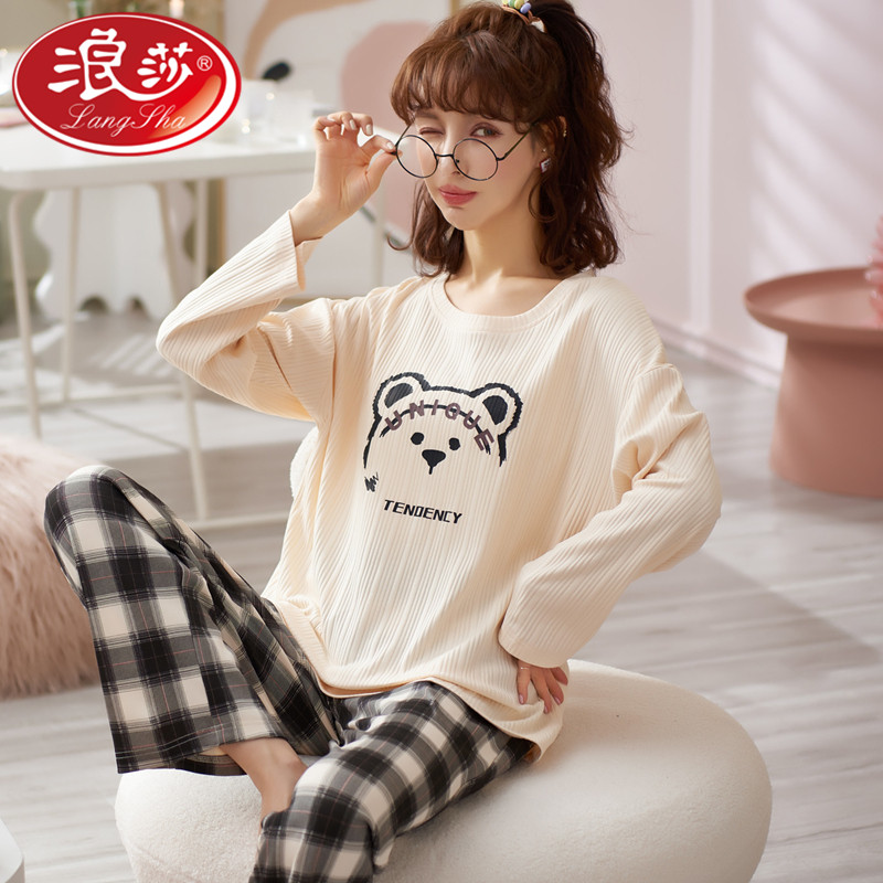 Xiaoxiangfeng pajamas women's spring and autumn pure cotton long-sleeved ladies cute 2022 new home clothes can be worn outside in autumn and winter