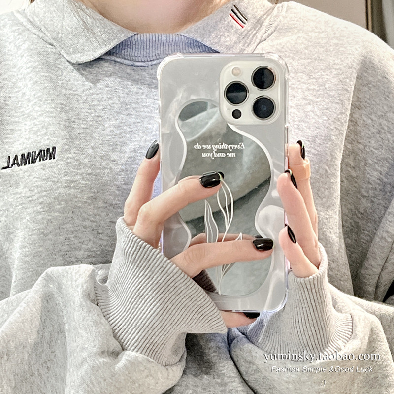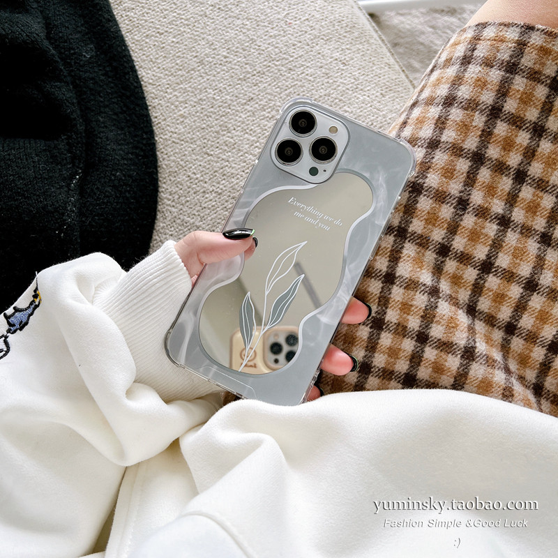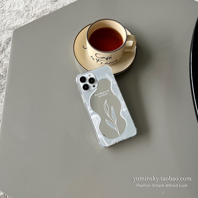 ins fresh leaf mirror apply iPhone12promax apple 13 phone protection shell 11 female xs anti-fall xr 8p