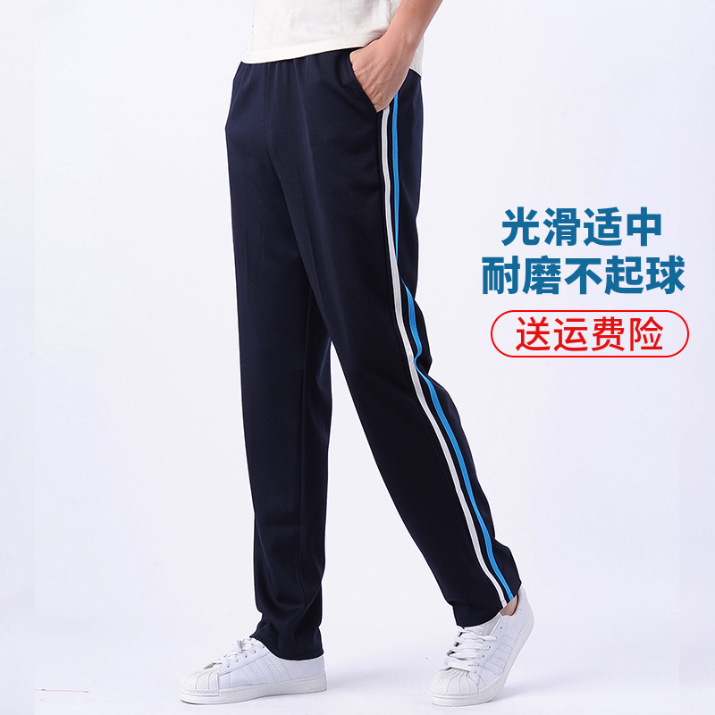 School Uniform Pants Blue White Bar Two Bars Straight Barrel Sports Men And Women Junior High Primary And Middle School Raw White Blue Striped Sports School Pants