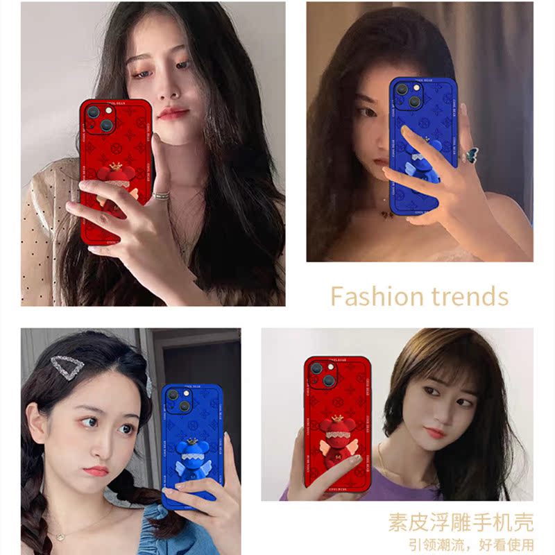 Angel Bear Apple 13promax Mobile Phone Protection Shell New Tide Card Silicone Anti-Fall Application iPhone12 Female Advanced Sensation