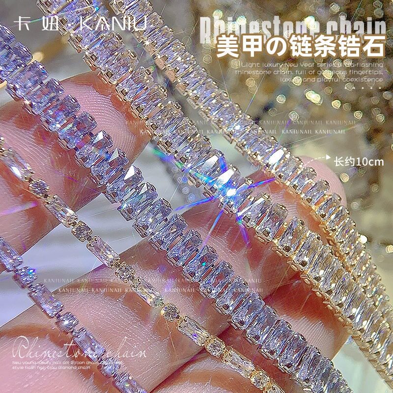 Super glitter nail art jewelry zircon chain Japanese luxury long diamond chain alloy net red explosive nail ornaments