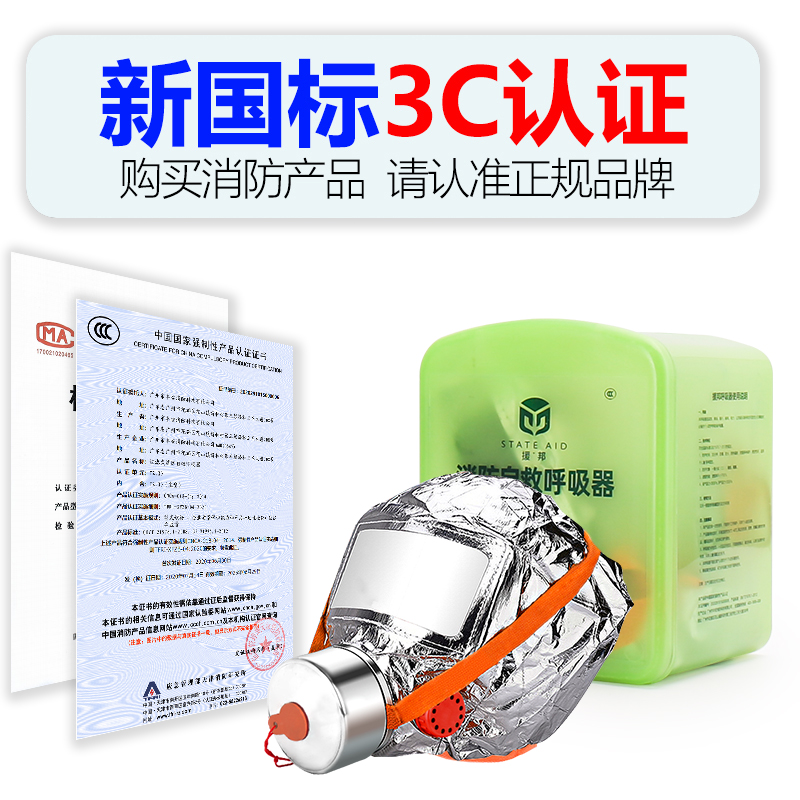 Fire Masks Smoke-Proof Anti-Fire Mask Hotel Guesthouse 3C certified for home fire escape Self-suction ventilator