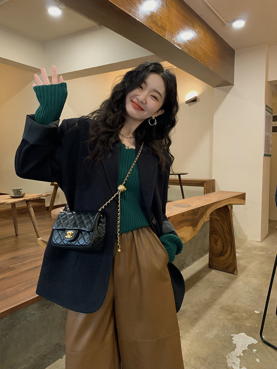 Ren Xiaoyi Black Chic Casual Suit Jacket Woman Advanced Design Sensation Small Crowd 2022 Spring Autumn Season New Great Clothes