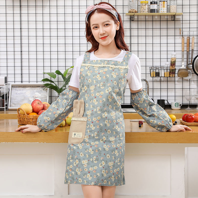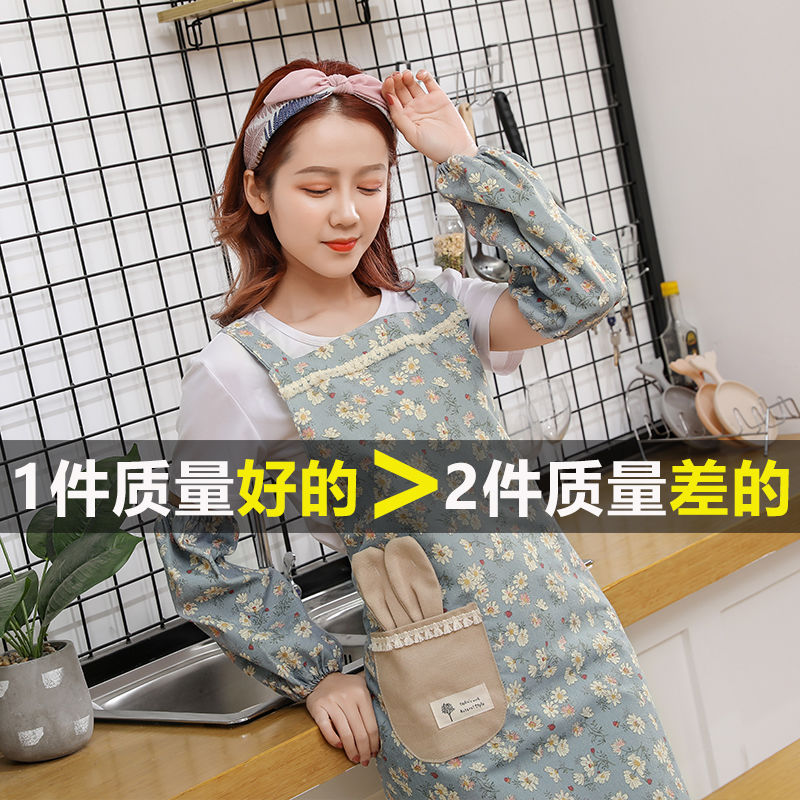 Apron female kitchen with clothes adult waterproof oil and cute net red long sleeves to work fashion