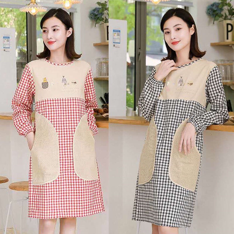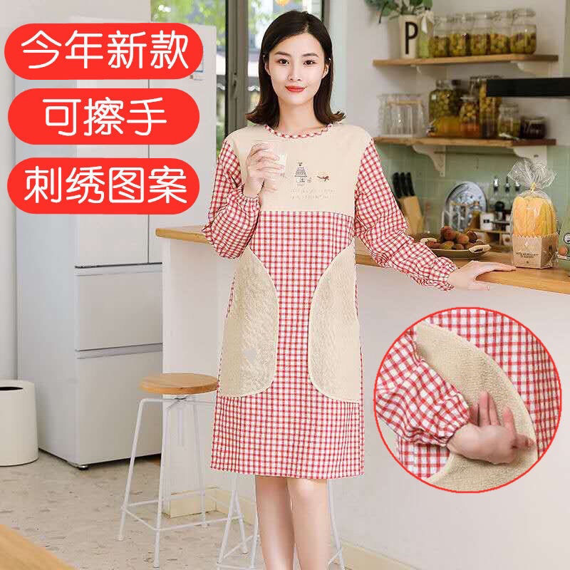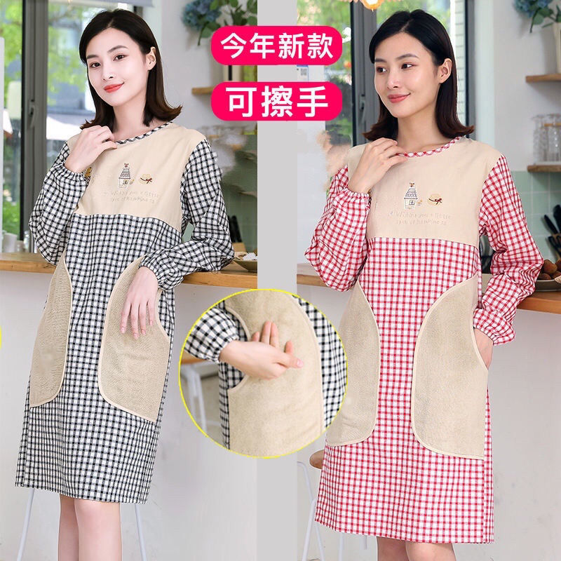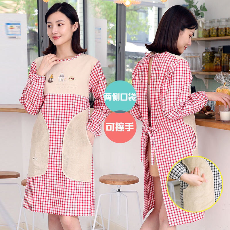 Apron women's home kitchen Western-style cotton apron women's protective clothing can wipe hands reverse dressing home adult long-sleeved smock