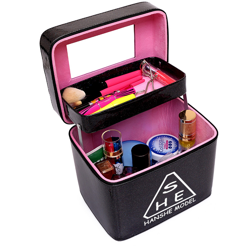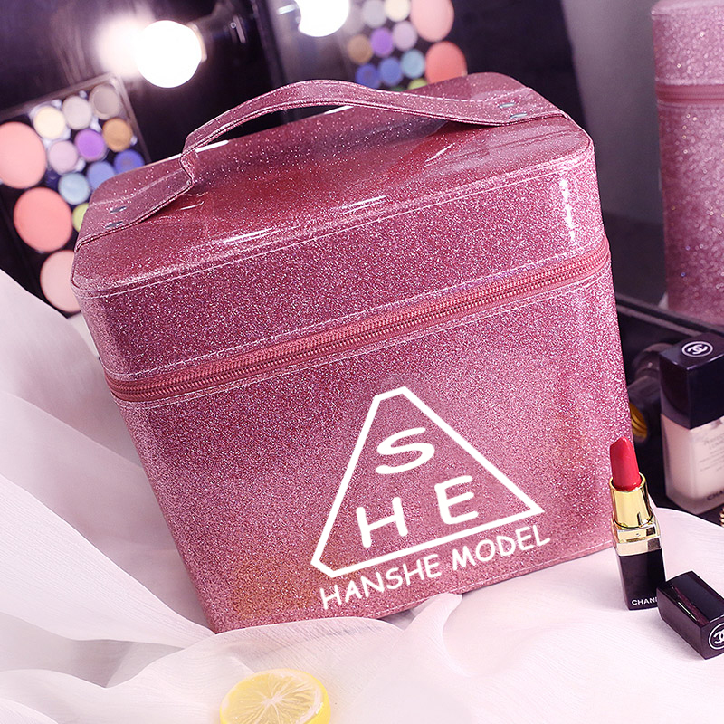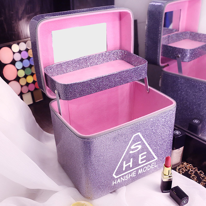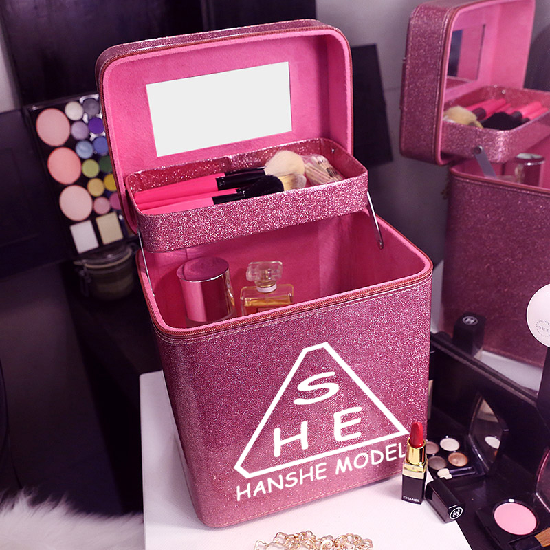 Versatile makeup case Double layer net red oversized capacity minimalist handbag large number female portable skin care product storage box