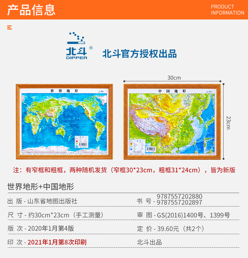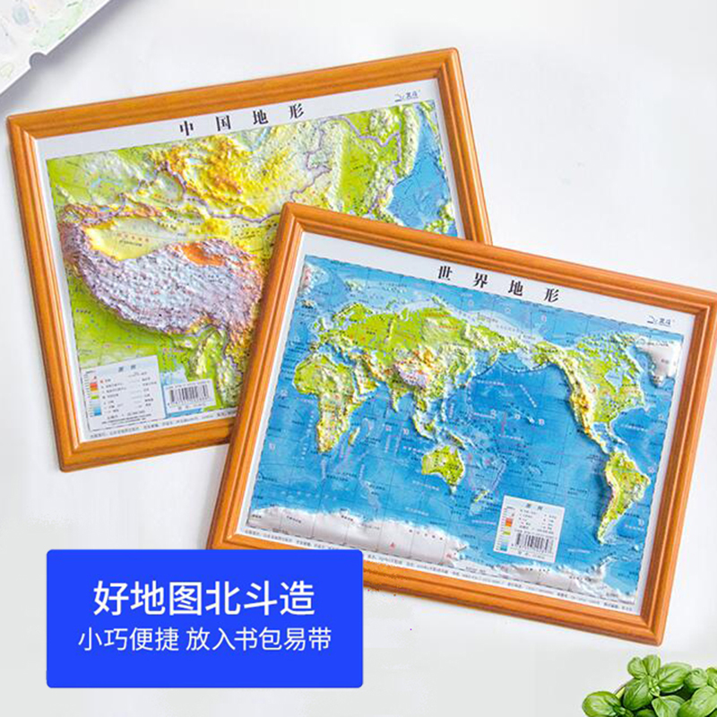 Beidou New China Map World Map 3d Rugged Topographic Map Decoration Students Geo-Three-dimensional Geomorphology