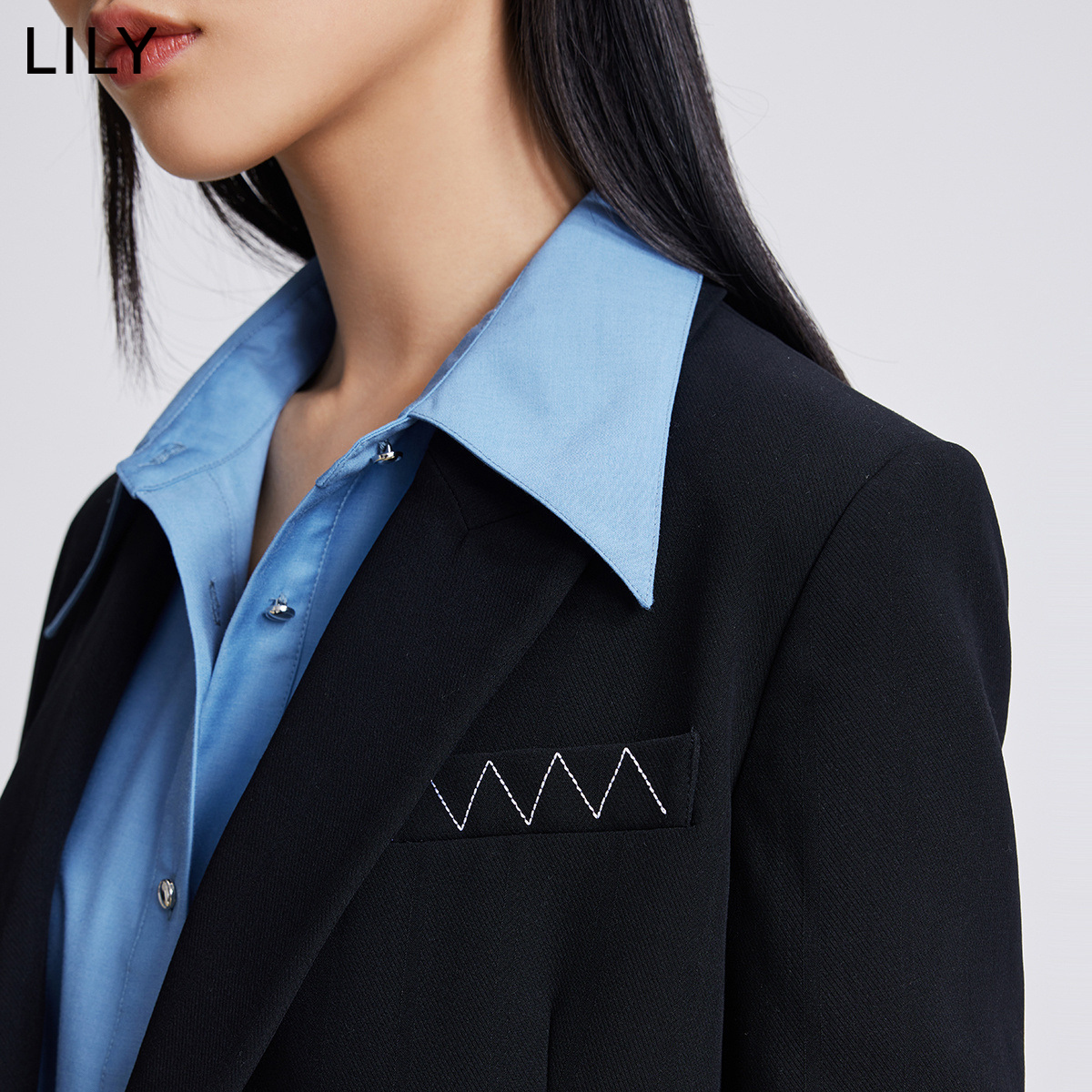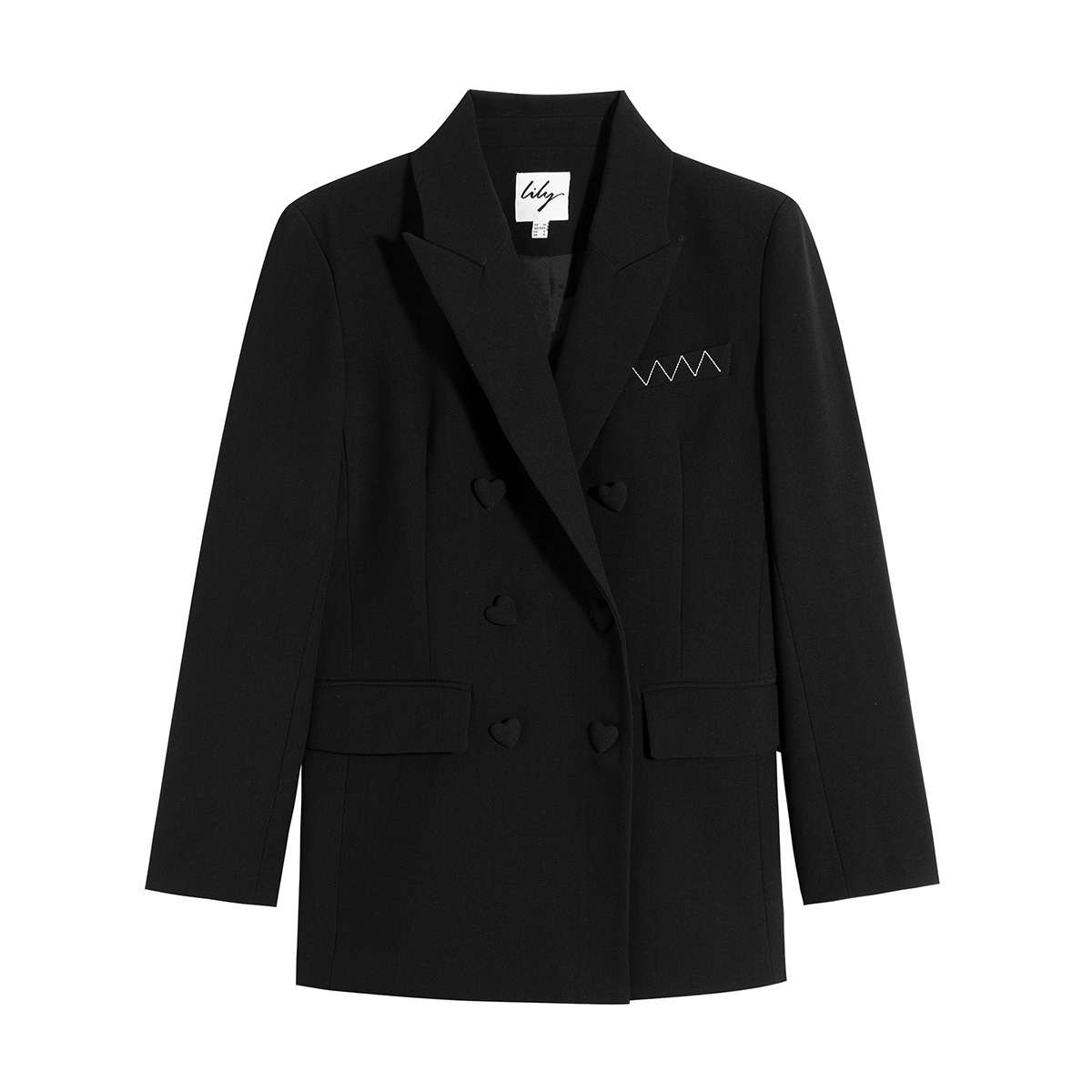 LILY2022 Spring new women's dress waterproof anti-fouling design Feel Loving Buckle Loose commuter black small suit jacket