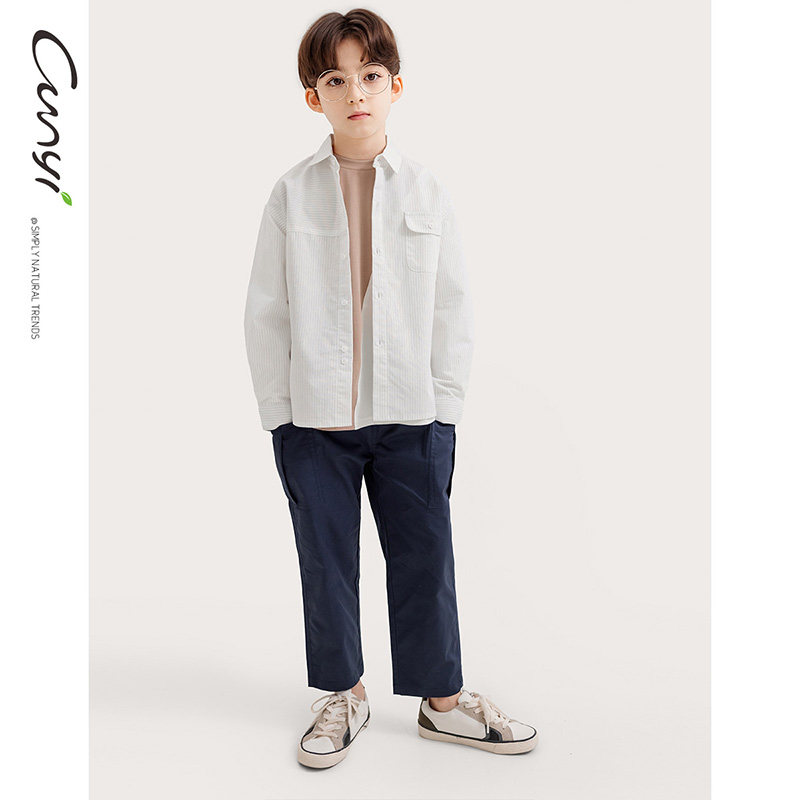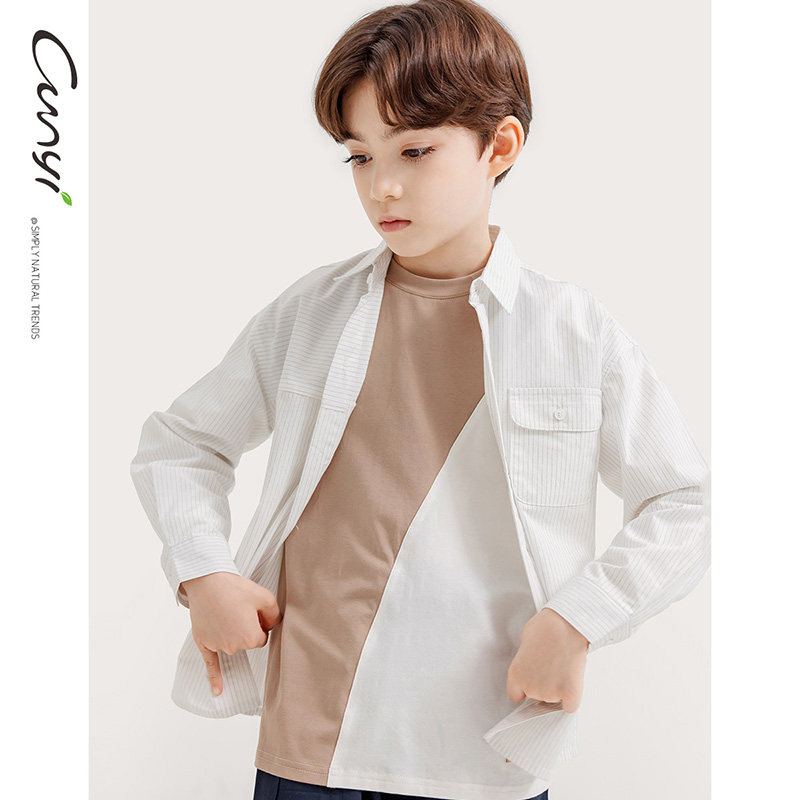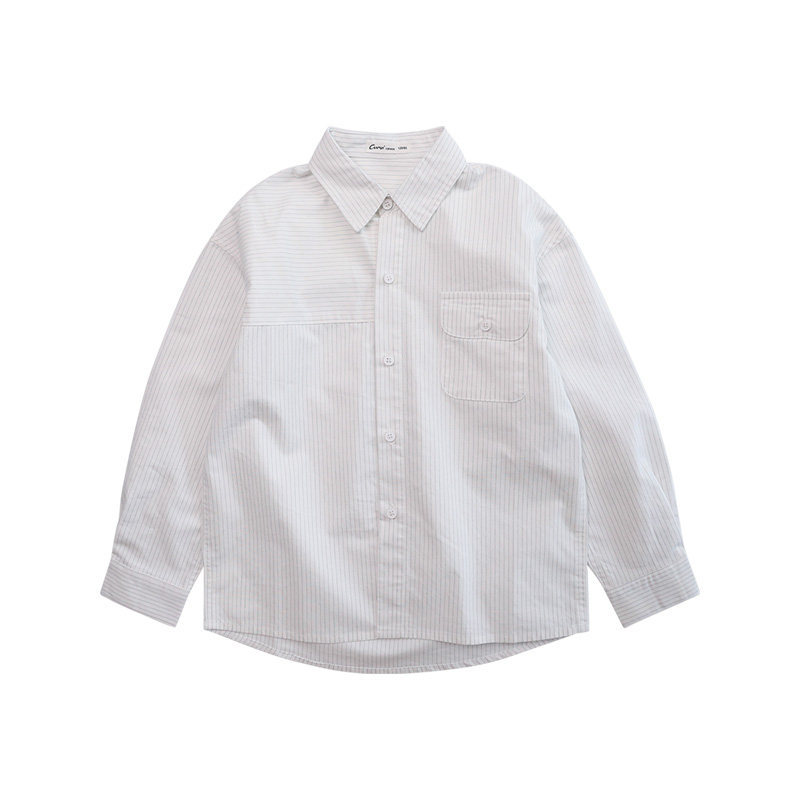 Pure One Good Pint Boy Dress Boy Long Sleeve Shirt 2022 Spring Dress New CUHK Boy Fashion Striped Shirt Personality Asymmetry