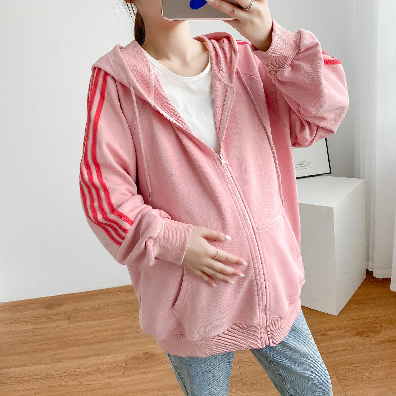 2022 Spring and autumn loaded with new large size gestation maternity dress loose with long version of even hat sportswear casual jacket Chauma blouses woman