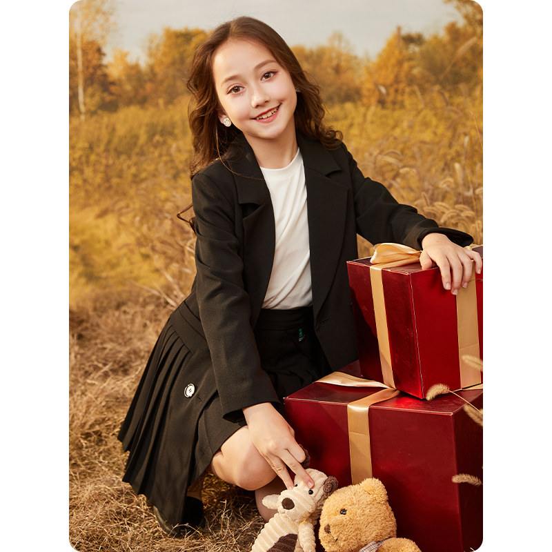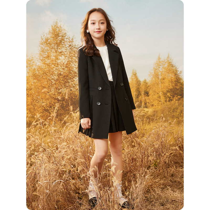 Girl suit jacket 2022 new foreign Korean version in Korean version Long version Spring and autumn big boy girl child little west suit black