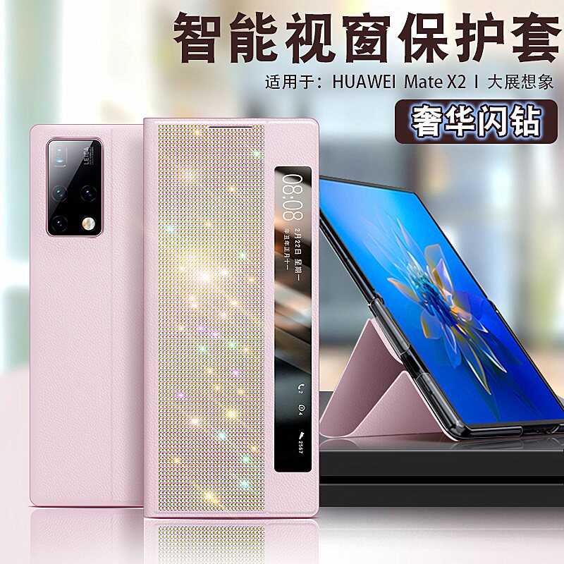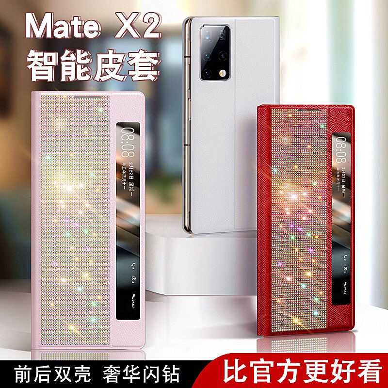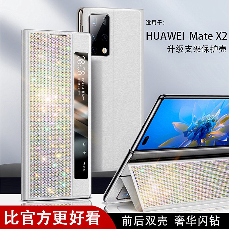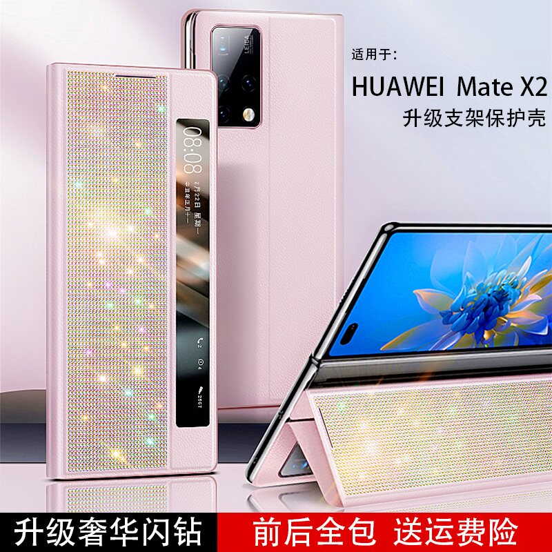 Suitable for Huawei mate x2 mobile phone protective shell new folding screen collector's edition protective cover bracket leather case flash drill upgrade version cowhide lens all-inclusive all-inclusive shell anti-fall high-end luxury women