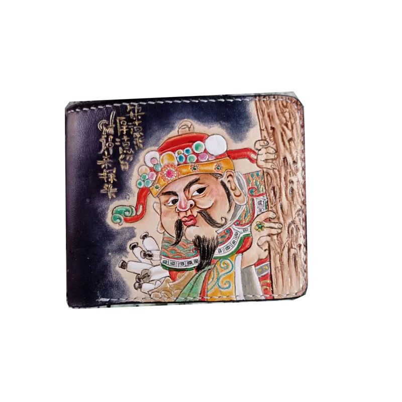 Pure Handmade Leather Carved Wallet Youth Zero Wallet Men's Leather Wallet Genuine Leather Money Clip Short Retro Cross Money God Pattern