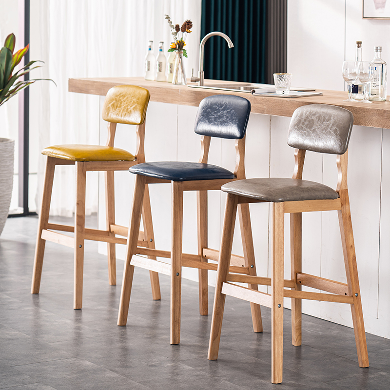 Solid wood back bar chair home modern minimalist small light luxury high chair Nordic American bar cashier counter bar stool