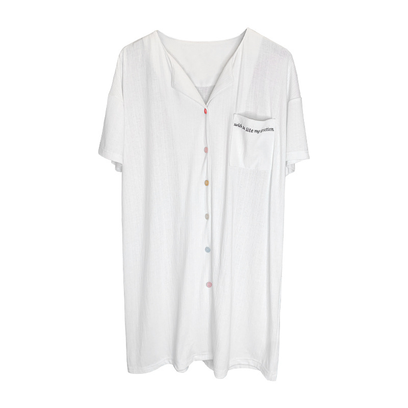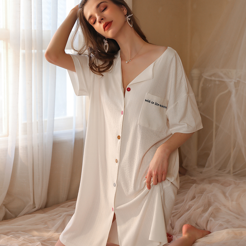 Vimirate pure cotton pyjamas short sleeves Long version Sexy shirt sleeping dress All cotton loose Large size Sizes Home Conserved Women Spring Summer