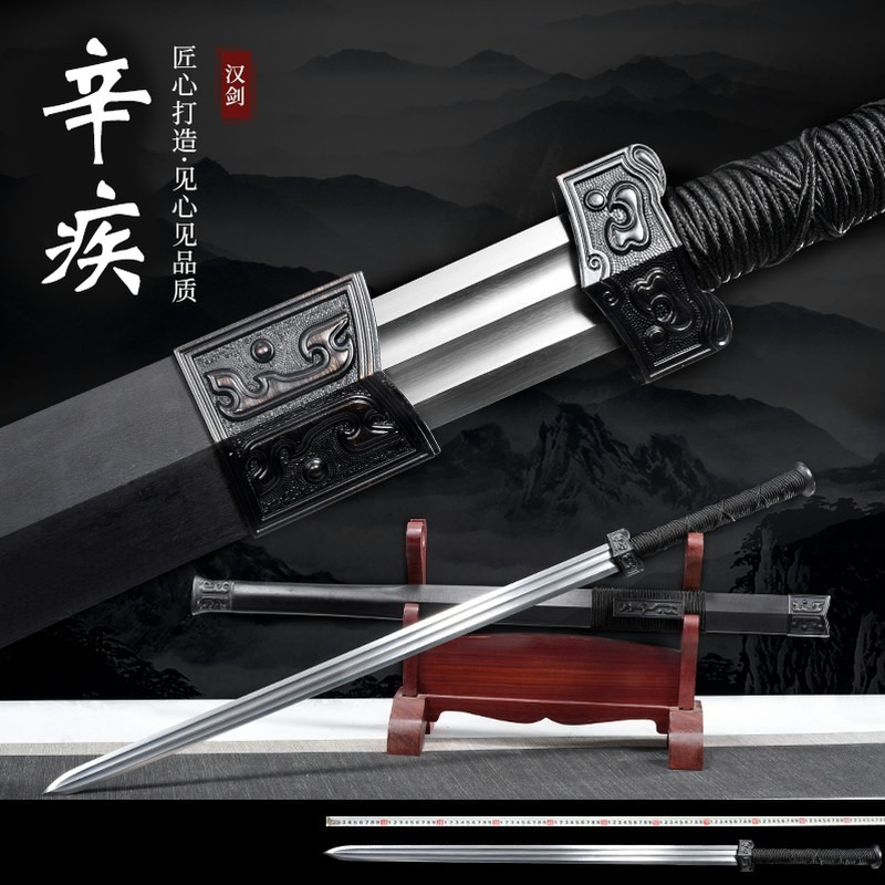 Longquan town house sword pattern steel long version eight-sided Han sword one-piece pure hand-forged manganese steel cold weapon not edged