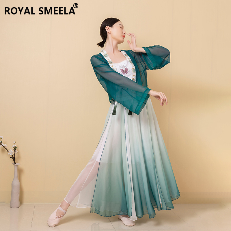 Classical Dance Dance Dress Rehearsal for Chinese Wind Performance Flight Comfort Women Acting Out of the Gradual Layer Large Pendulum Skirt Suit Spring