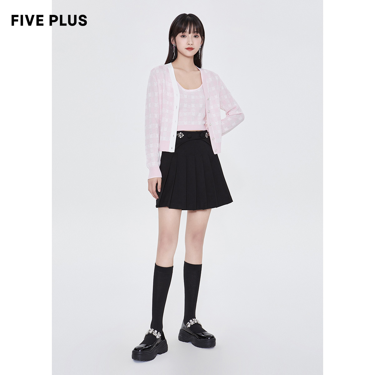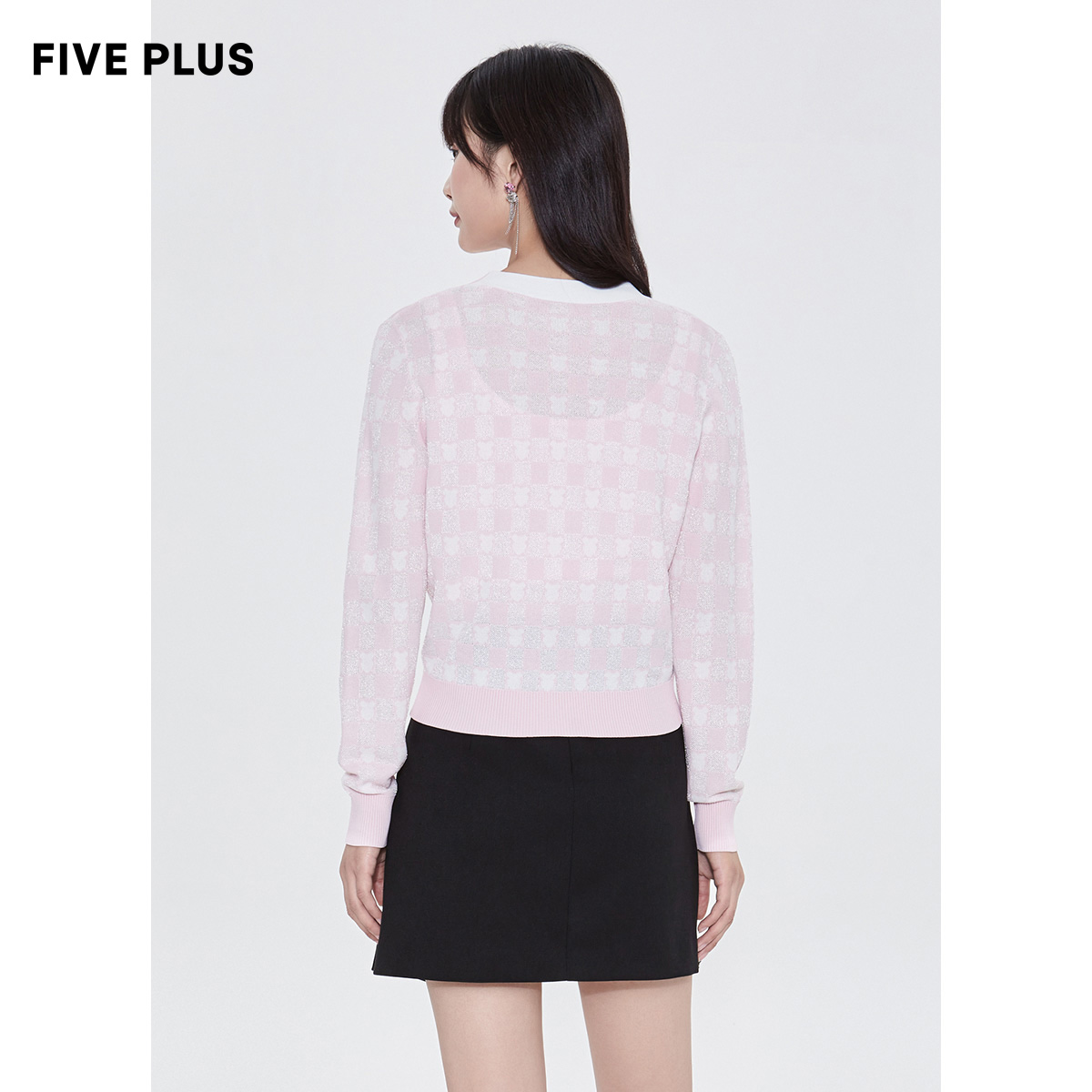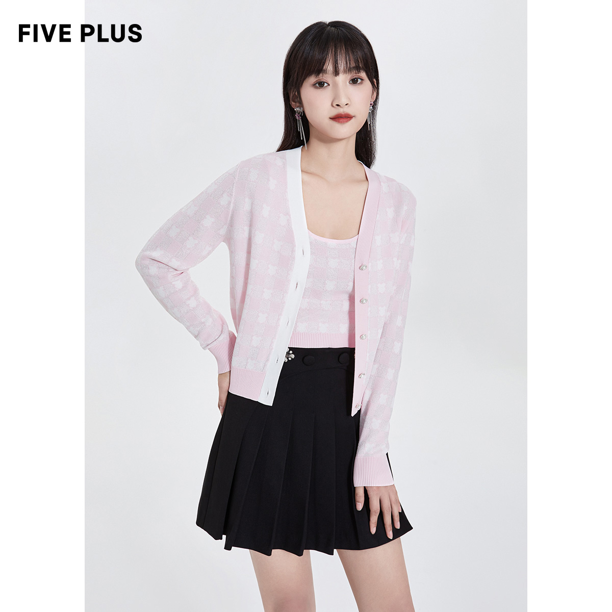 FIVE PLUS2022 new women's spring dress temperament V collar plaid knit cardio-hoodie with two sets of vest blouses