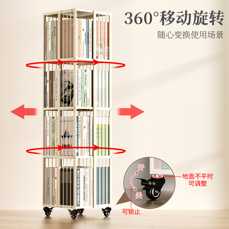 Floor Swivel Bookshelves 360 Degrees Bookcase Home Bedroom Multilayer Mobile Simple Shelf Living Room Containing Bookshelves