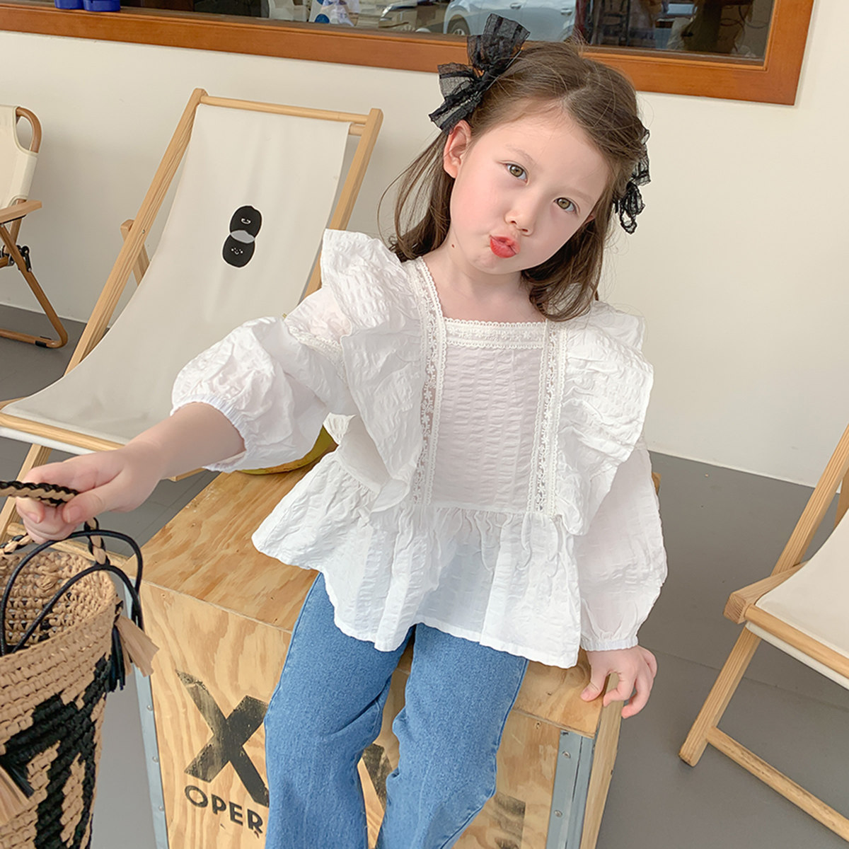 Foam Foam Home Custom Child Clothing 2022 New Girl Doll Blouse Blouse Children Foreign Pie Shirt Baby Spring Dress Shirt