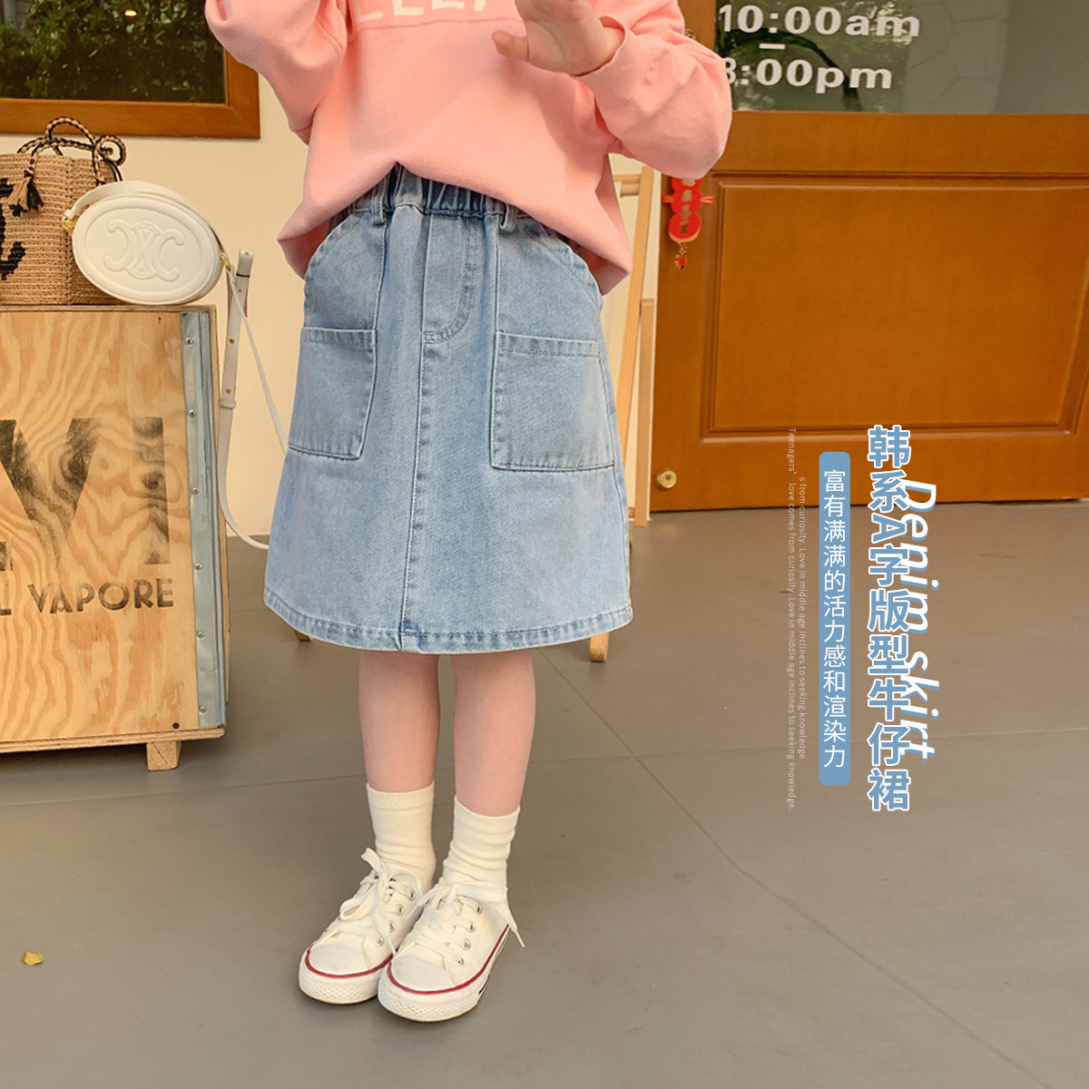 Foam home Custom children's clothing 2022 new girls' foreign-sent denim semi-body dress baby Korean version of dress Children's spring clothing