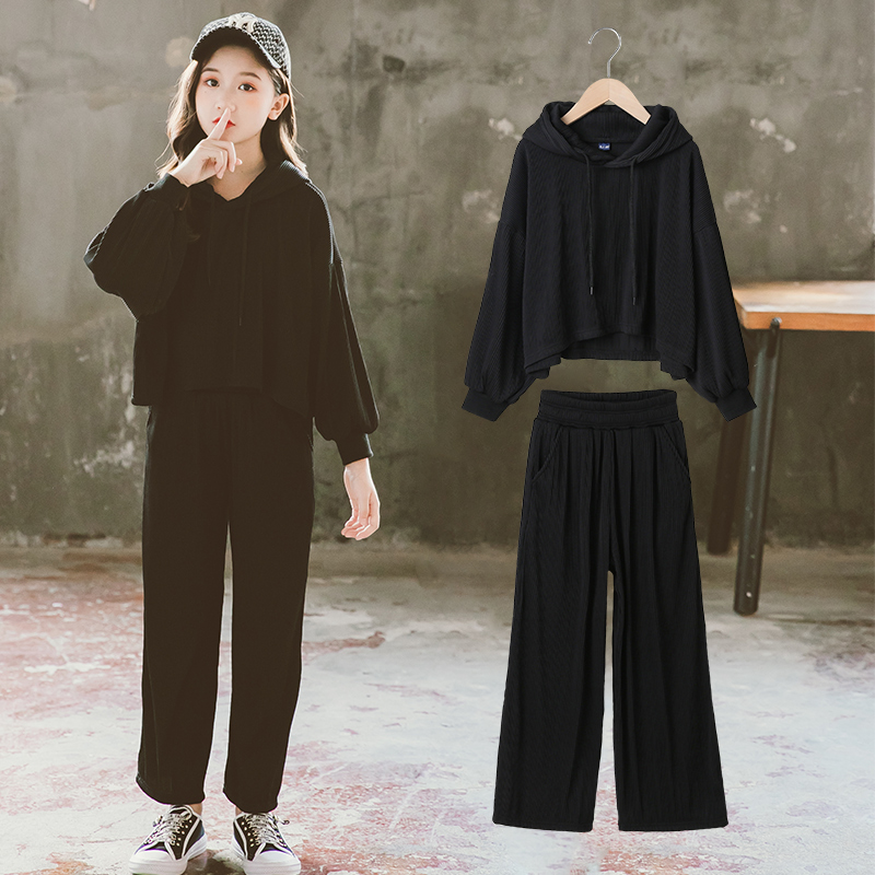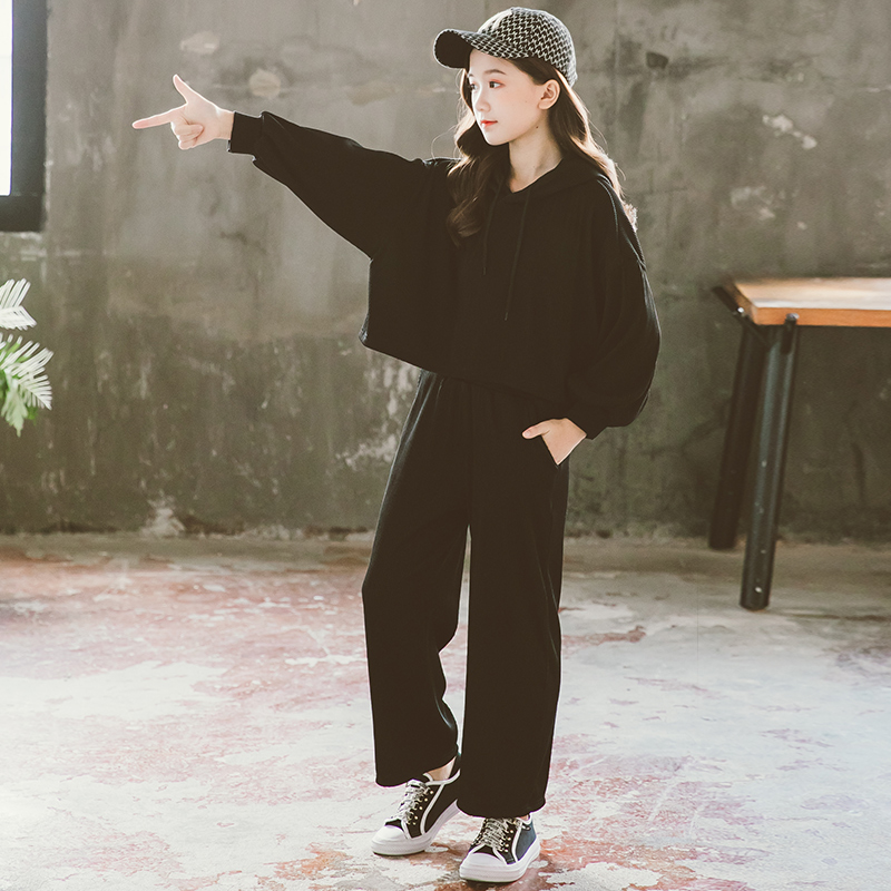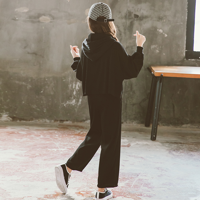 Girl Suit Spring Autumn Net Red Ocean Big Kids Fashion Thick T-Shirt Leisure Sports Even Hat Spring Clothing Children Two Sets